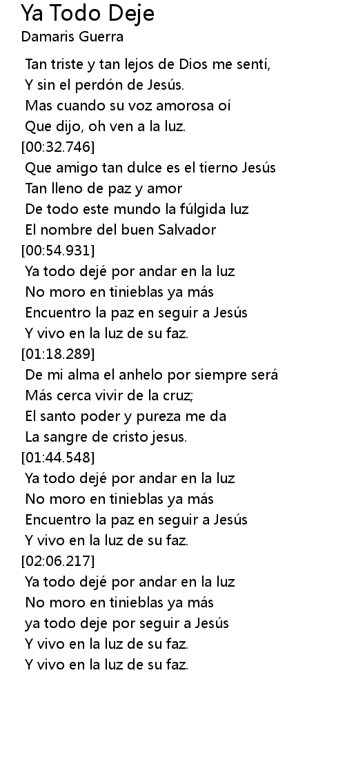 | [02:33.921] | ya todo deje por seguir a Jesu s |