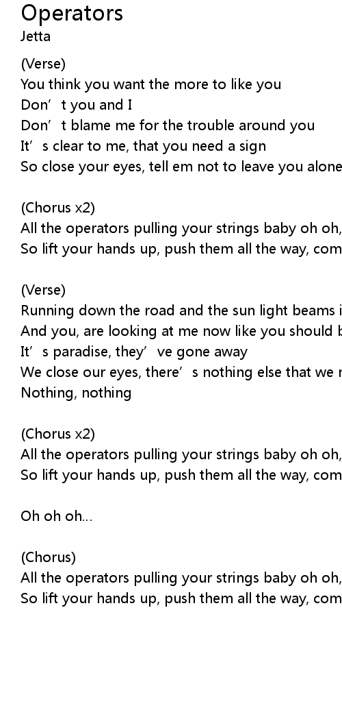 | All the operators pulling your strings baby oh oh, oh oh | |