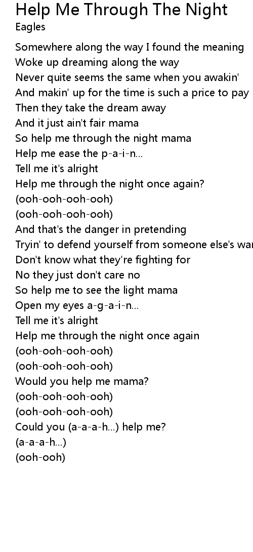 | So help me through the night mama | |