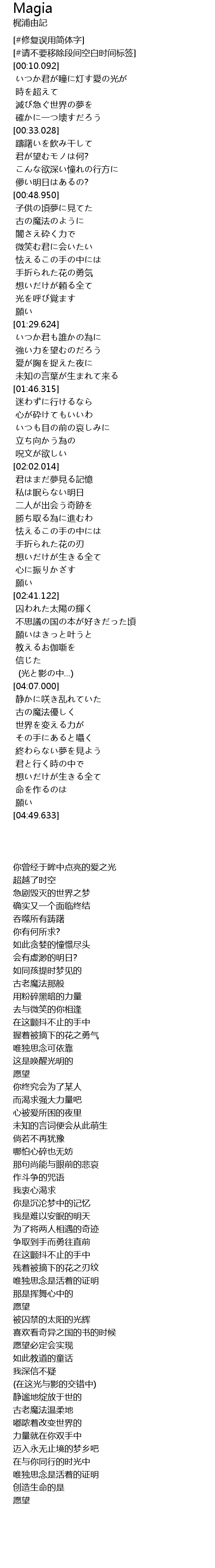 | [00:54.335] | 古の魔法のように |
