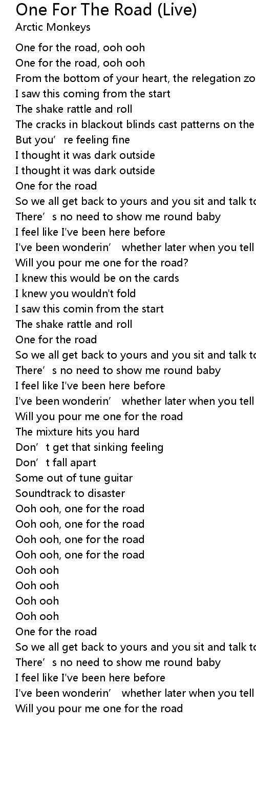 | [00:12.017] | One for the road, ooh ooh |
