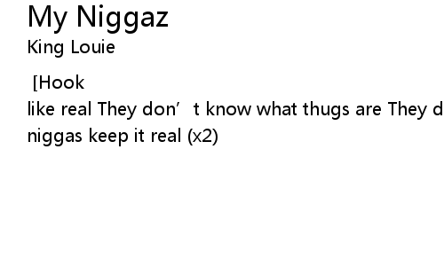 | Hook Hook My niggas keep it real x4 These niggas like raw These niggas like real They don' t know what thugs are They don' t know about that feel My niggas keep it real x2 |