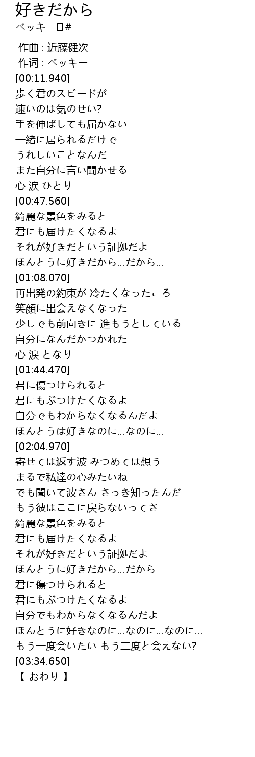 | [03:09.910] | ほんとうに好きなのに…なのに…なのに… |