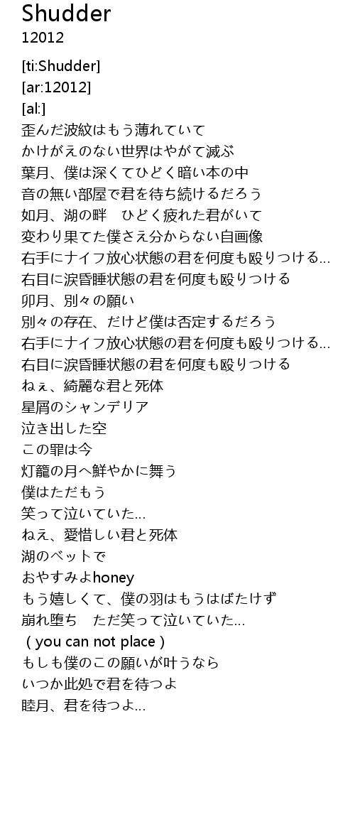 | [01:12.25] | 右手にナイフ放心状態の君を何度も殴りつける… |