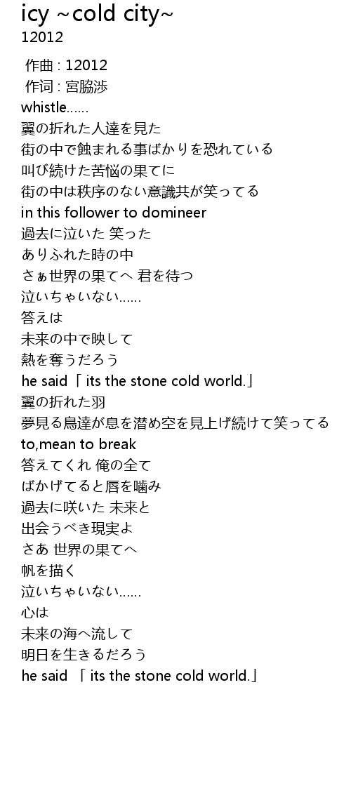 | [03:23.27] | he said 「 its the stone cold world.」 |