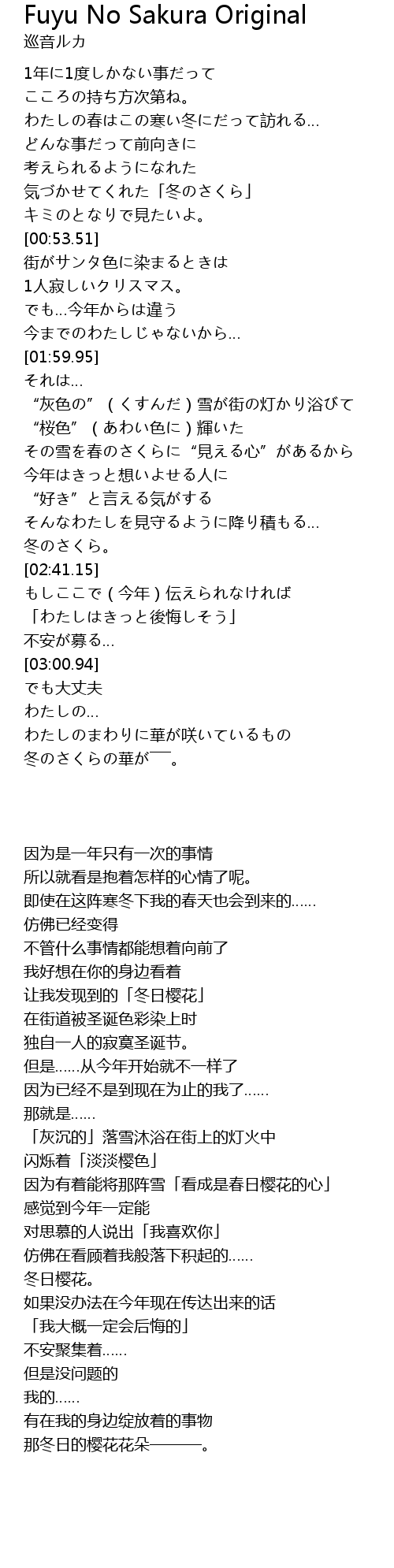 | [02:38.24] | 冬のさくら。 |