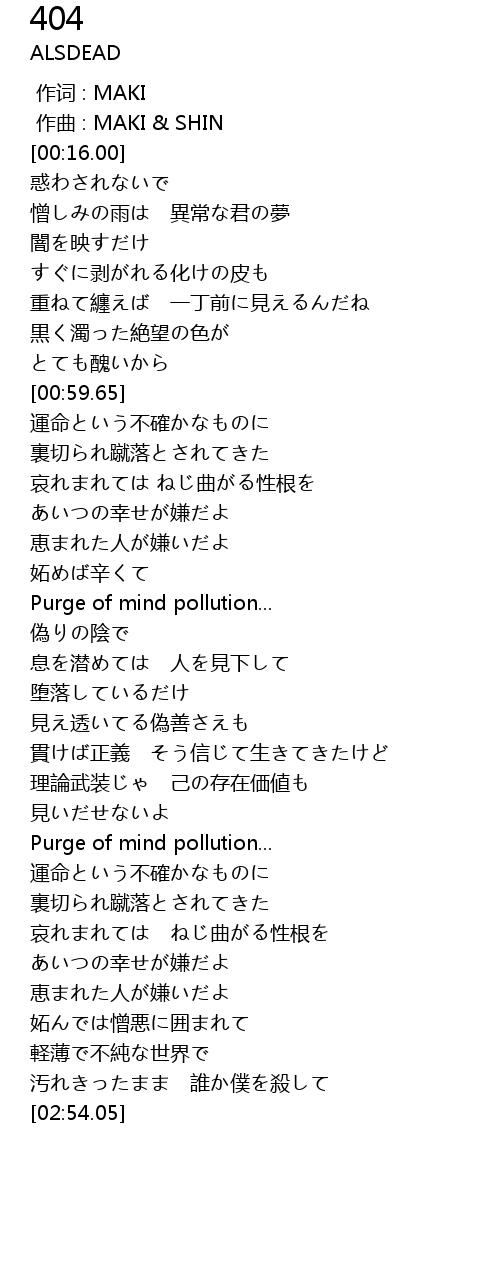 | [02:43.55] | 汚れきったまま 誰か僕を殺して |