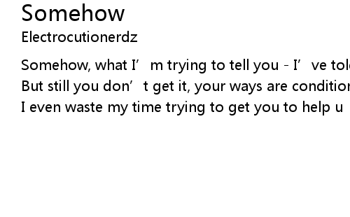 | Somehow, what I’m trying to tell you - I’ve told it already, so many times - But still you don’t get it, your ways are conditioned everyday - So why should I even waste my time trying to get you to help u |