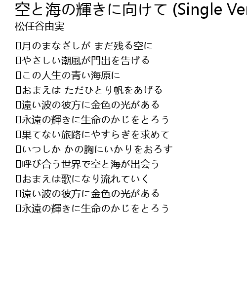 | [00:20.000] | やさしい潮風が門出を告げる |