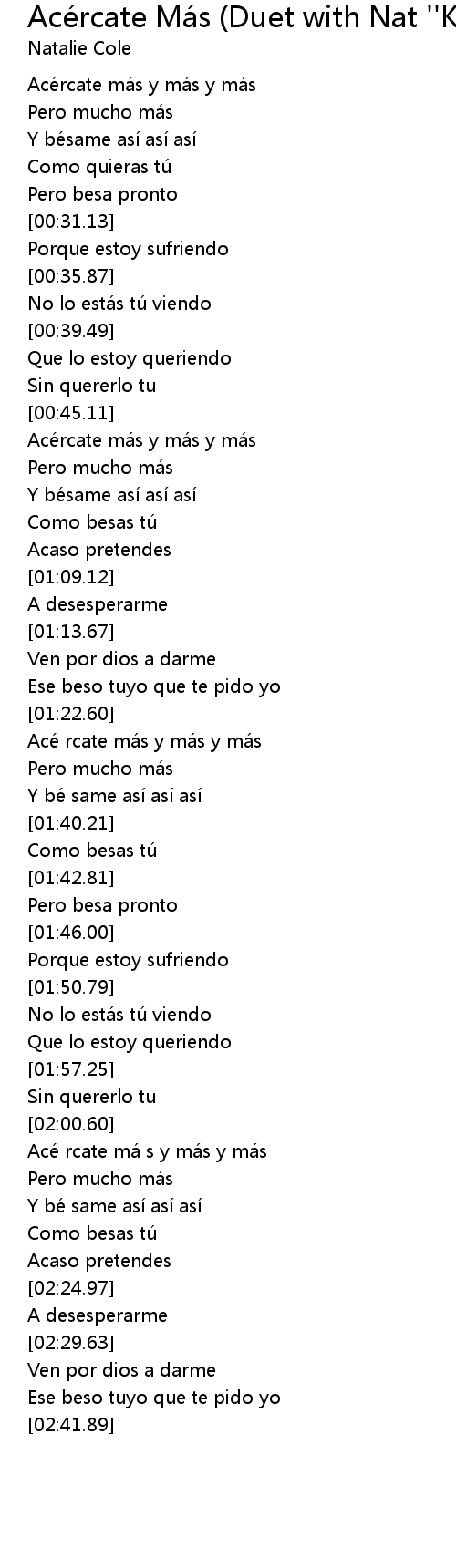 | [02:34.34] | Ese beso tuyo que te pido yo |