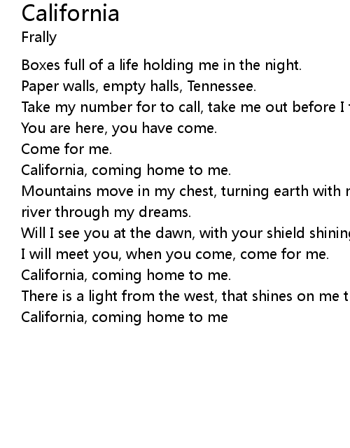 California, coming home to me |