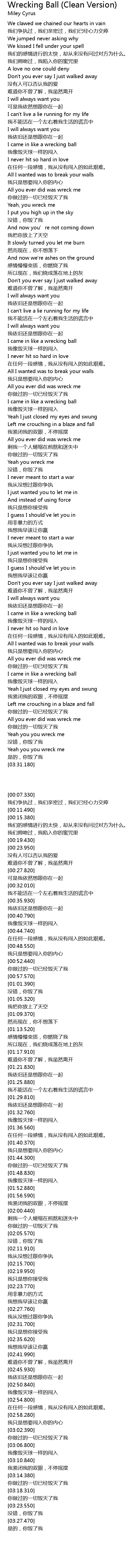 | [03:06.800] | I came in like a wrecking ball |