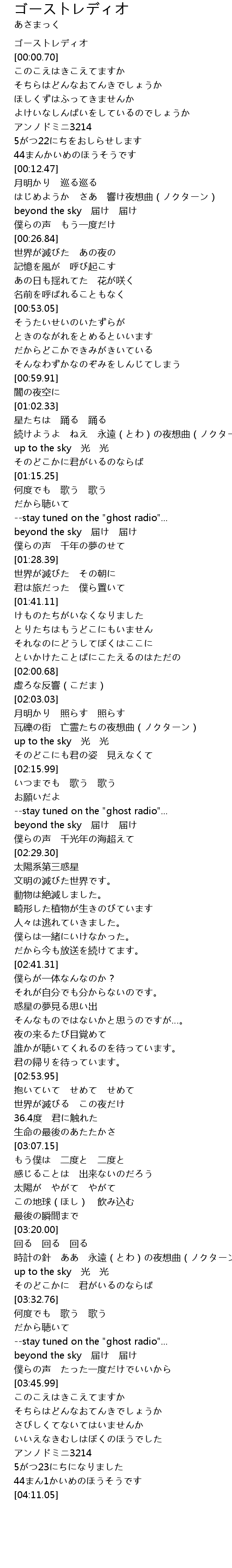 | [00:00.27] | ゴーストレディオ |