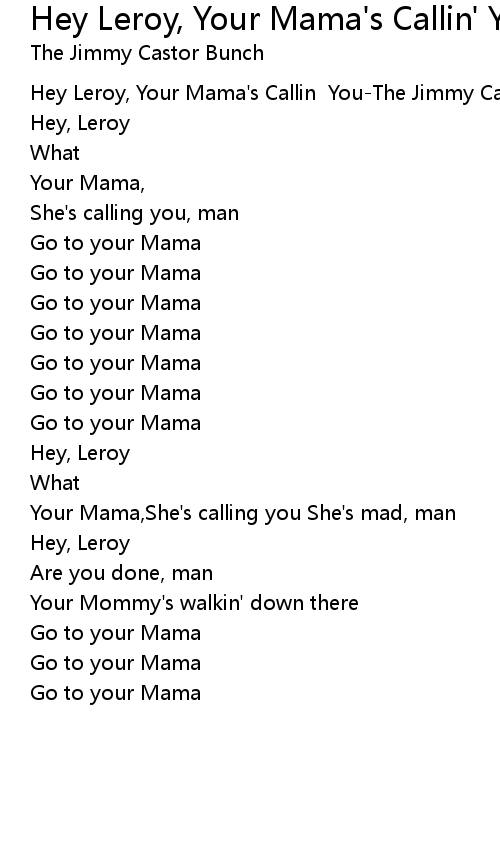 | Song | Hey Leroy, Your Mama's Callin' You |