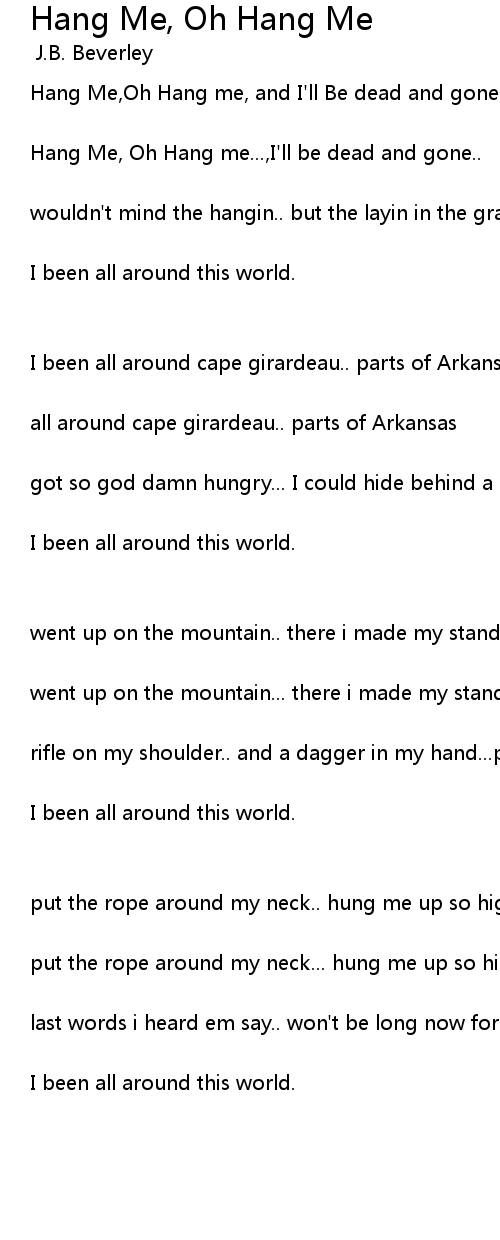 Hang Me, Oh Hang me...,I'll be dead and gone..