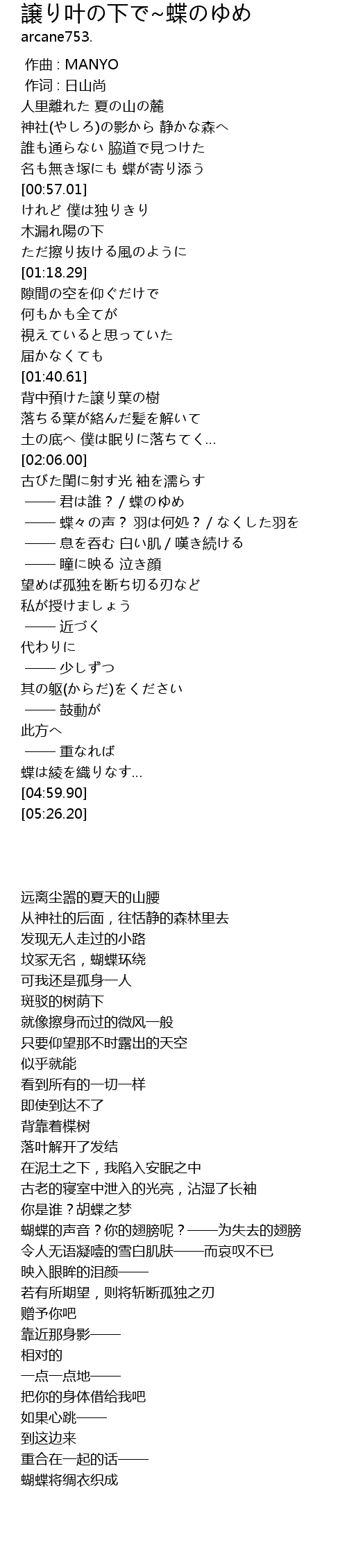 | [03:38.34] | —— 君は誰?/蝶のゆめ |