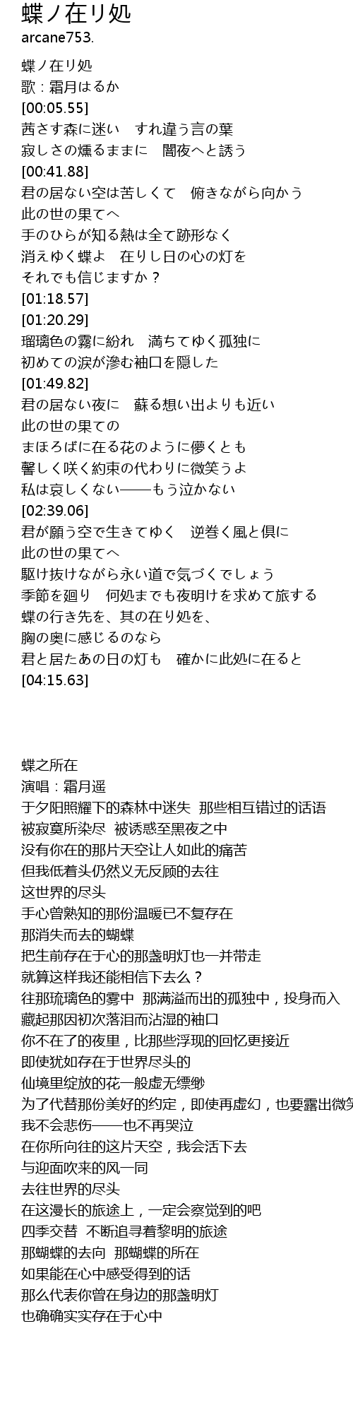 | [03:49.35] | 蝶の行き先を、其の在り処を、 |