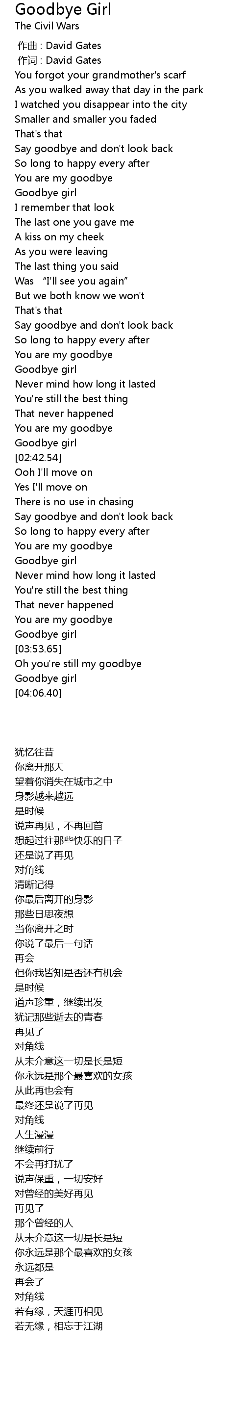 | [03:48.54] | Goodbye girl |