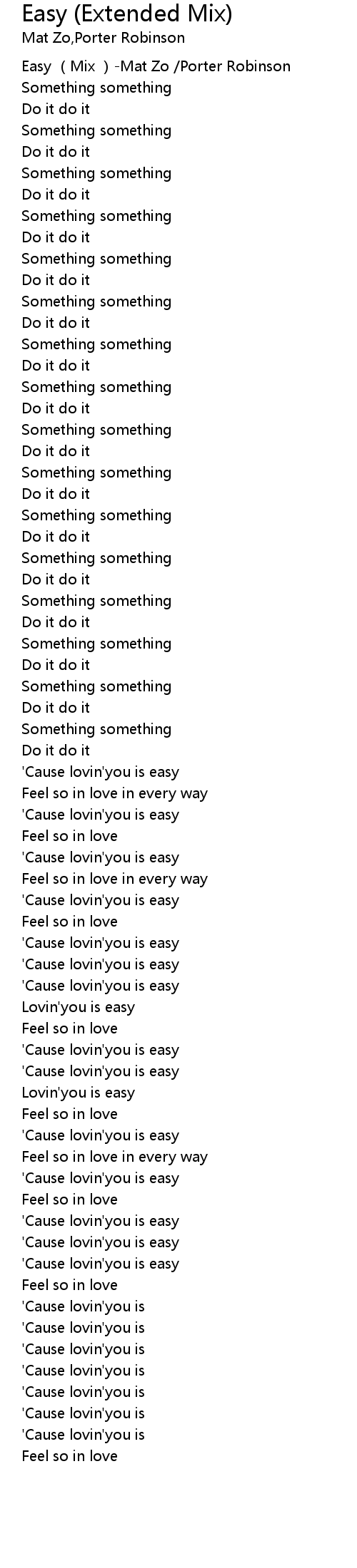 | [00:00.00] | Easy (Mix )-Mat Zo /Porter Robinson |