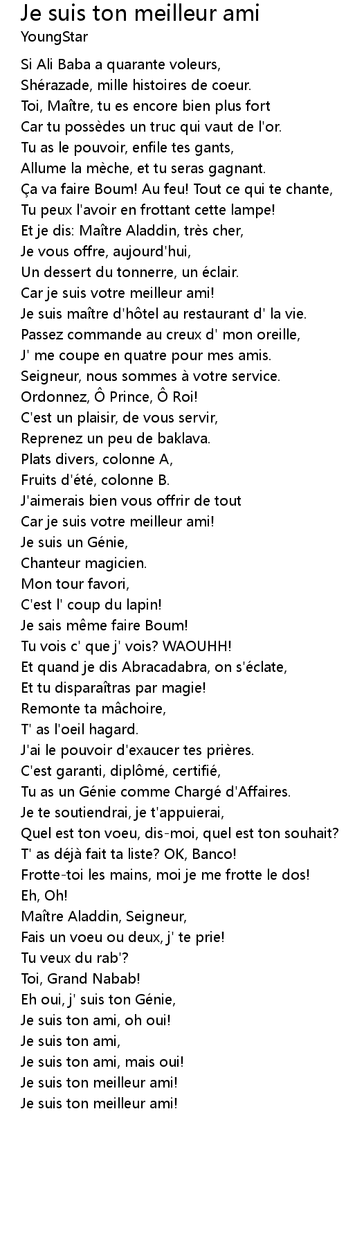 | Song | Je suis ton meilleur ami |