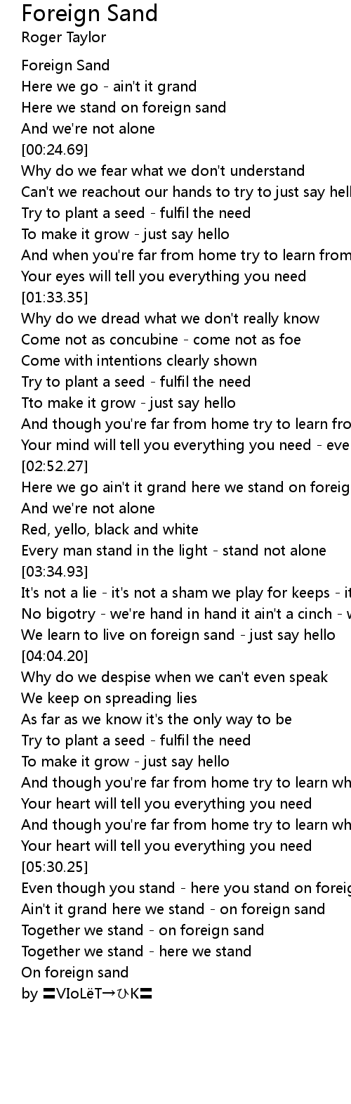 | [05:34.31] | Even though you stand here you stand on foreign sand |