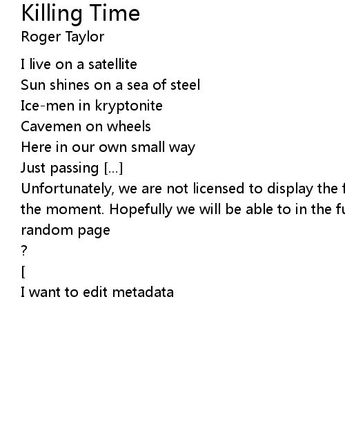 | Unfortunately, we are not licensed to display the full lyrics for this song at the moment. Hopefully we will be able to in the future. Until then, how about a | |