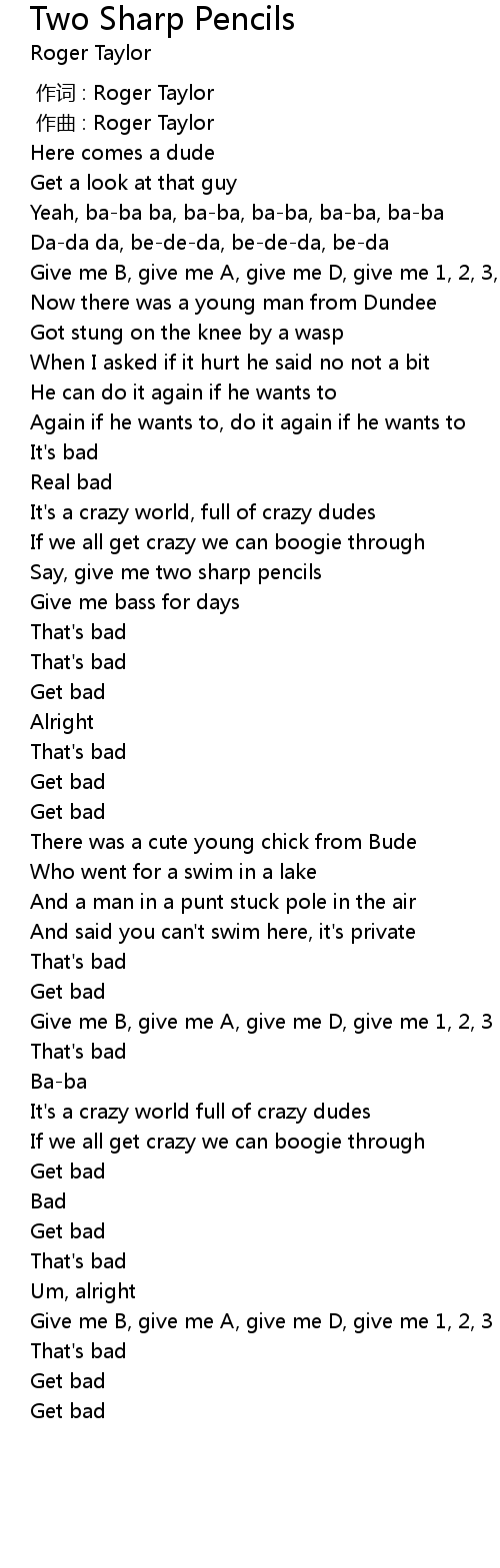 | [00:00.000] | 作词 : Roger Taylor |