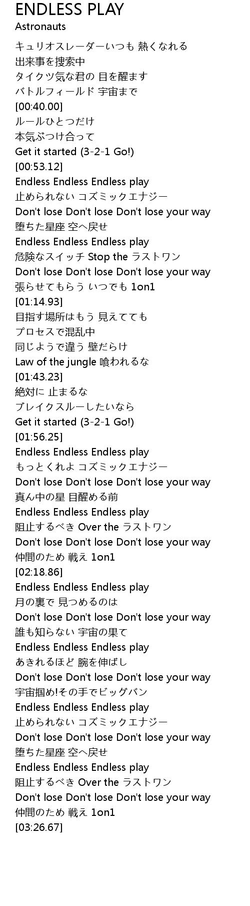 | [01:58.45] | もっとくれよ コズミックエナジー |
