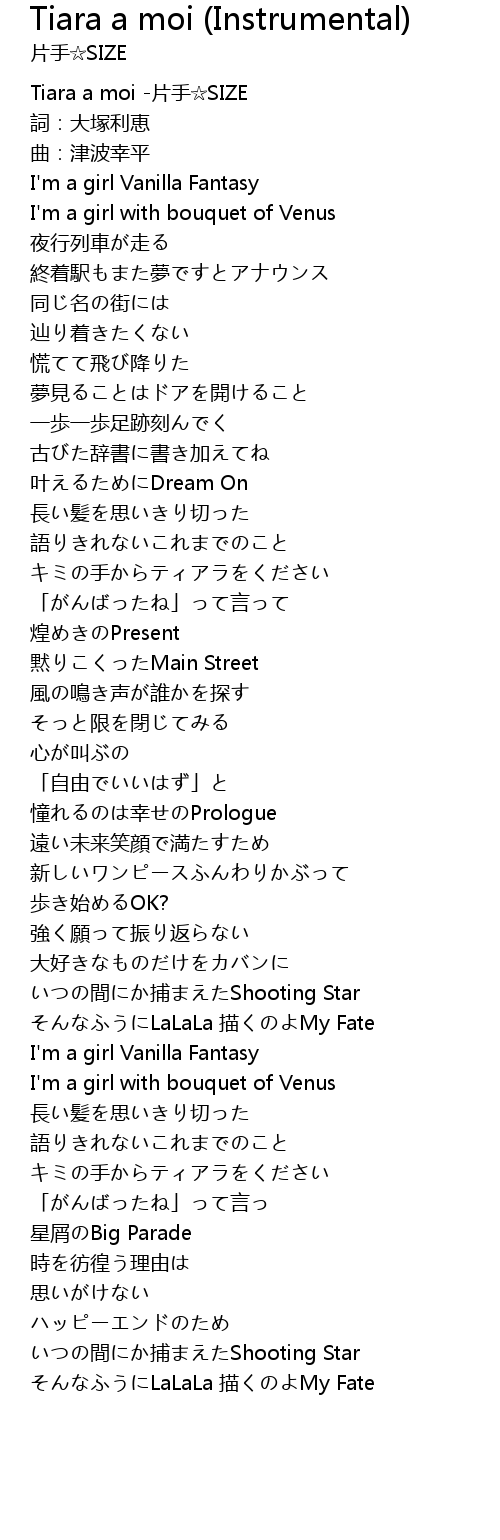 | [00:00.650] | Tiara a moi -片手☆SIZE |