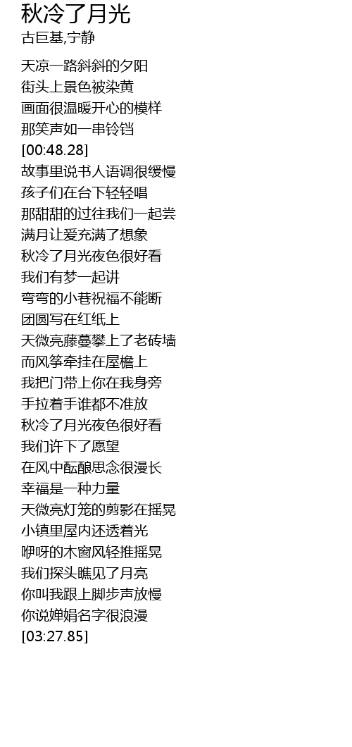 | [01:20.31] | 秋冷了月光夜色很好看 |