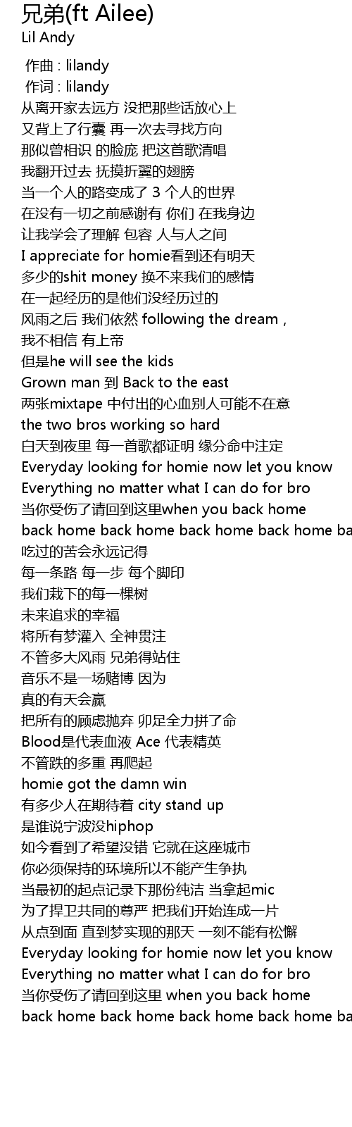 | [00:32.491] | I appreciate for homie kàn dào hái yǒu míng tiān |