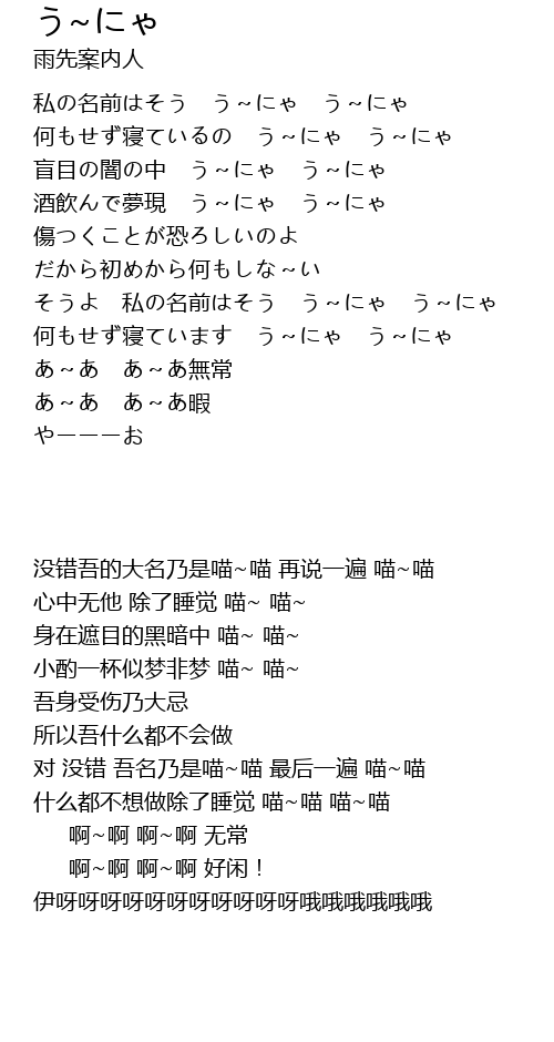 私の名前はそう う~にゃ う~にゃ |