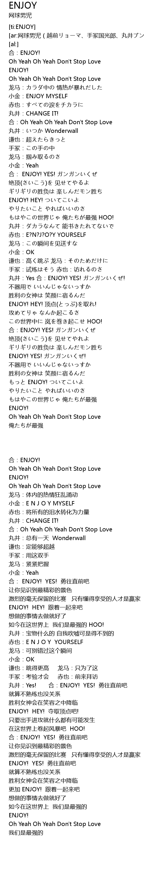 | [01:20.33] | 赤也:E?N?J?O?Y YOURSELF |