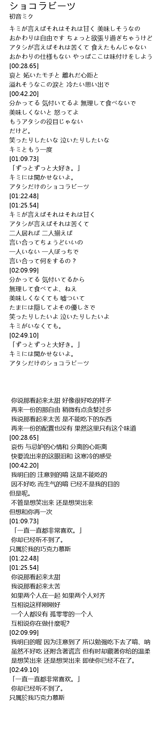 | [02:58.35] | アタシだけのショコラビーツ |