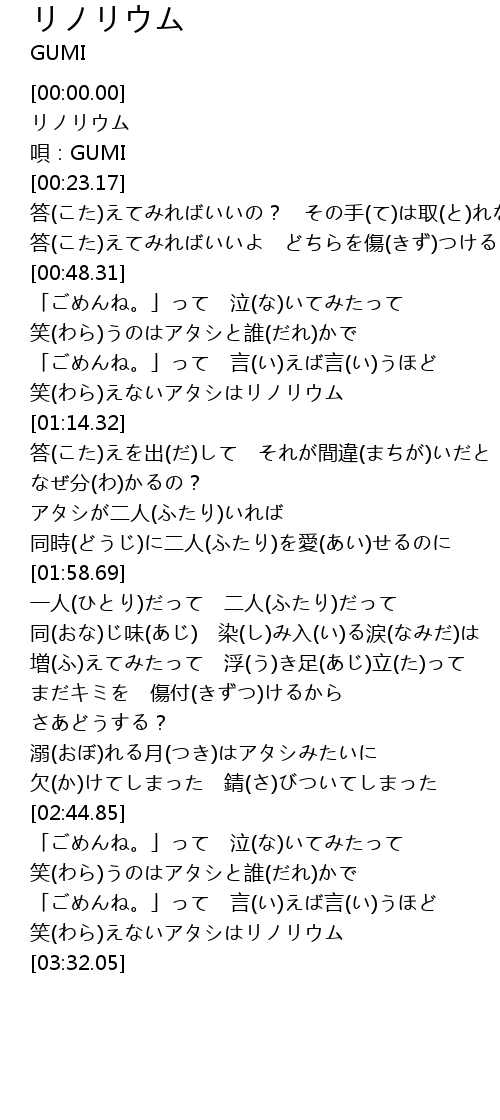 | [03:23.06] | 笑(わら)えないアタシはリノリウム |