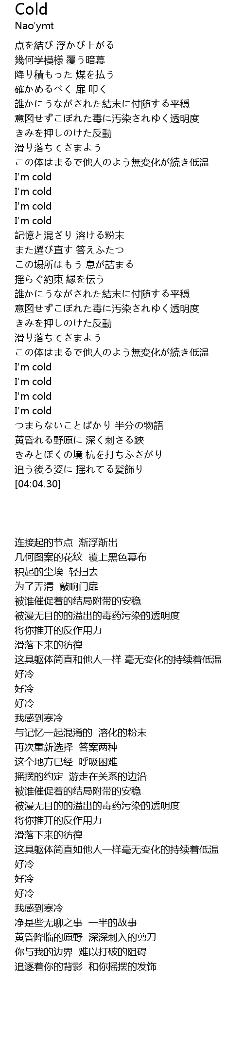 | [02:51.21] | この体はまるで他人のよう無変化が続き低温 |