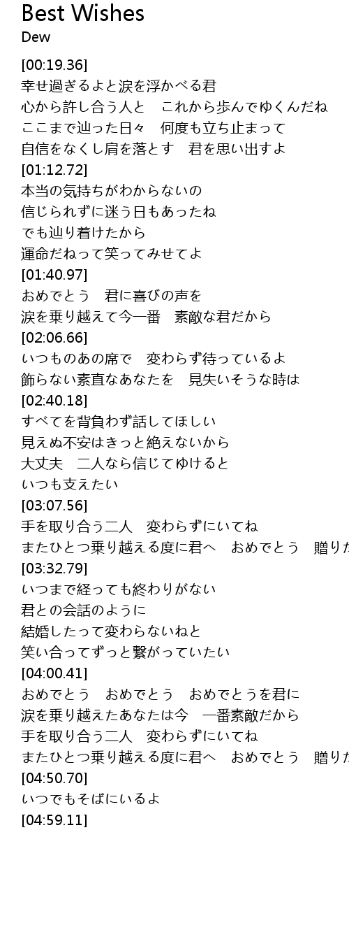| [01:41.75] | おめでとう 君に喜びの声を |