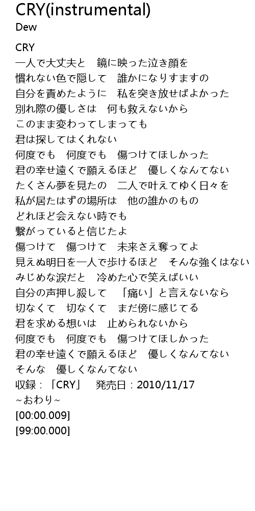 | [04:37.02] | 収録:「CRY」 発売日:2010/11/17 |