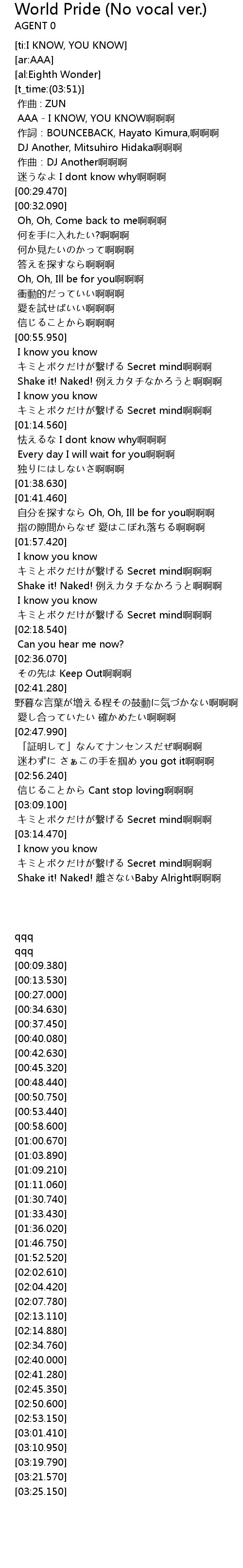 | [00:00.000] | AAA I KNOW, YOU KNOW a a a |
