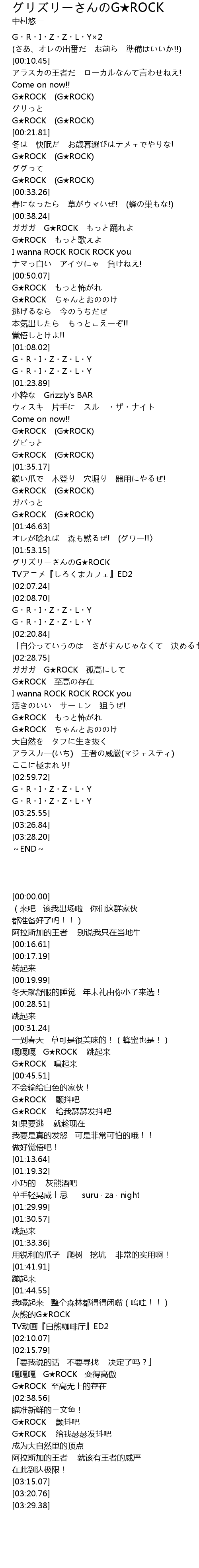 | [01:54.53] | グリズリーさんのG★ROCK |