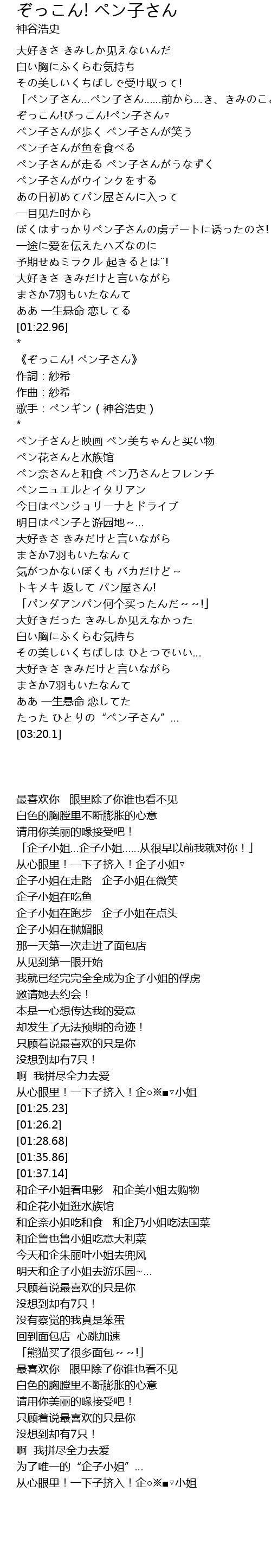 | [00:52.58] | ぼくはすっかりペン子さんの虏デートに诱ったのさ! |