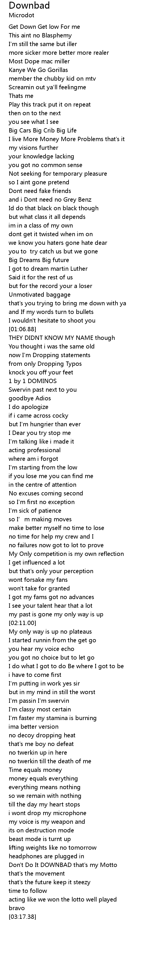 | [03:07.72] | Don' t Do It DOWNBAD that' s my Motto |
