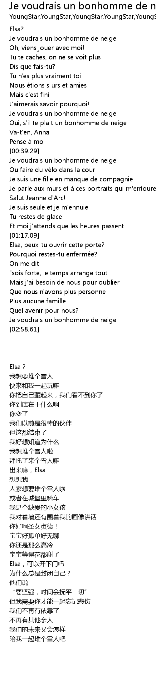 | [02:55.66] | Je voudrais un bonhomme de neige |