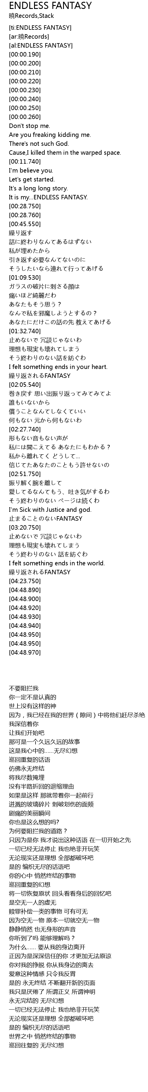 | [00:19.750] | It is my... ENDLESS FANTASY. |