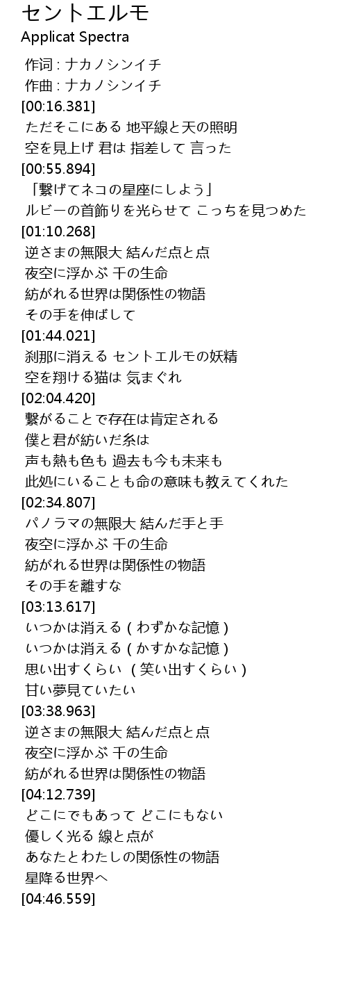 | [01:54.164] | 刹那に消える セントエルモの妖精 |