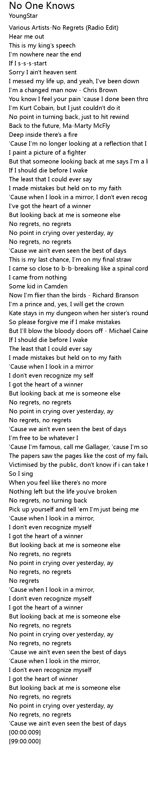 [00:03.37] Various Artists-No Regrets (Radio Edit)