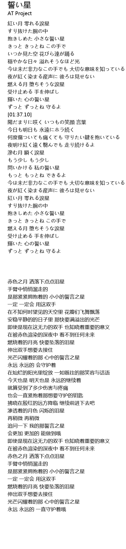 | [03:41.92] | 抱きしめた 小さな誓い星 |