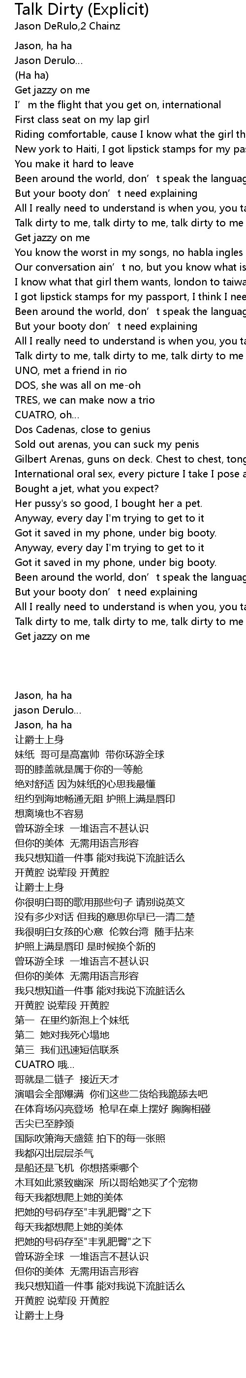 | Song | Talk Dirty (Explicit) |