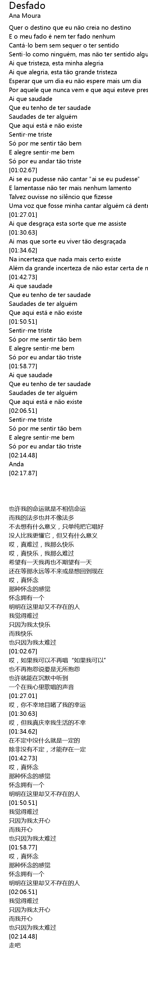 | [00:18.92] | E o meu fado e nem ter fado nenhum |