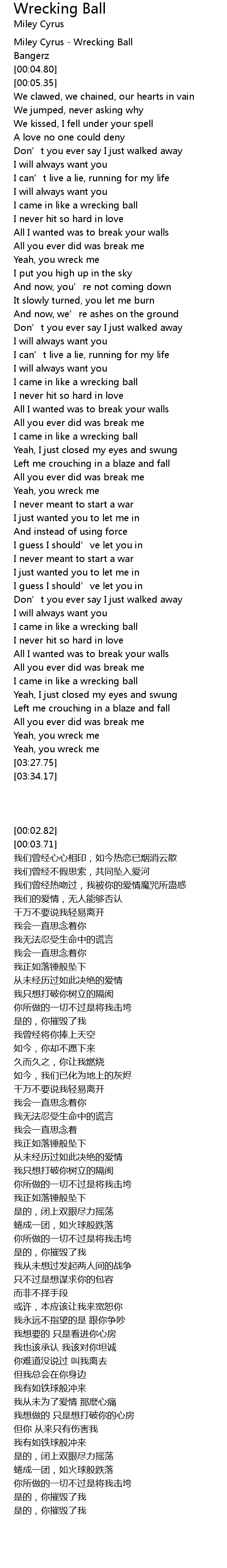 | [00:02.82] | Miley Cyrus - Wrecking Ball |